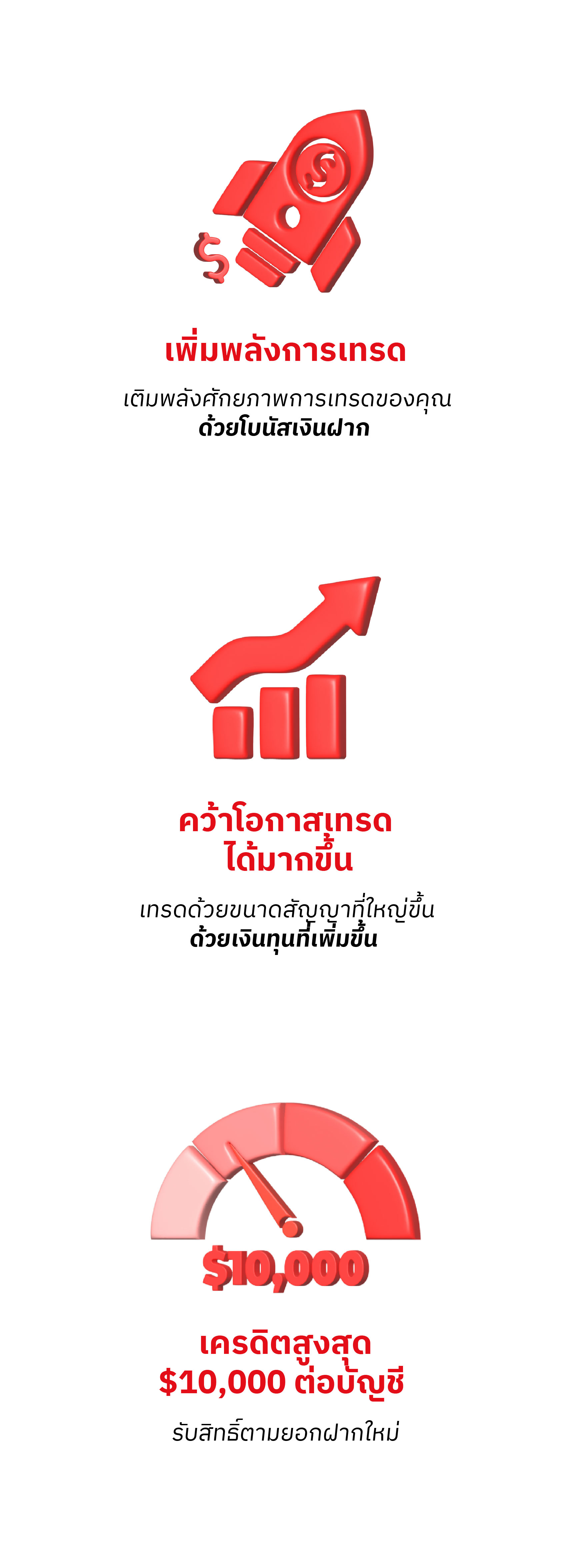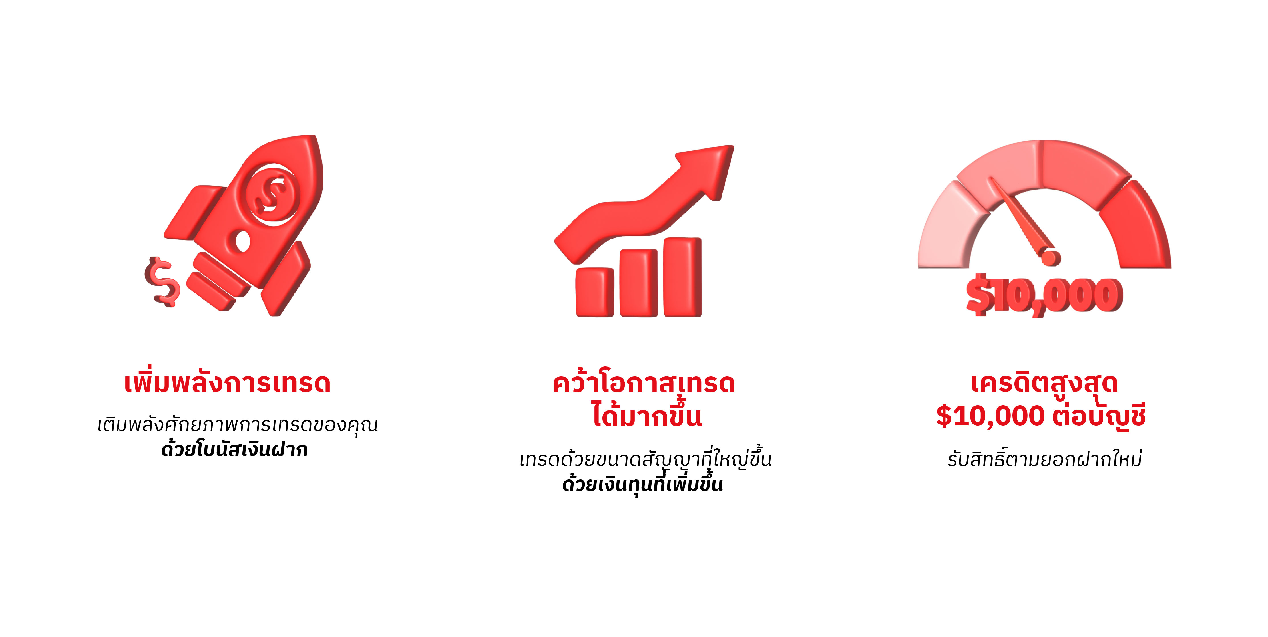ผู้เข้าร่วมที่ผ่านเกณฑ์คุณสมบัติจะได้รับเครดิตเทรดคิดเป็นเปอร์เซ็นต์ของยอดเงินฝาก